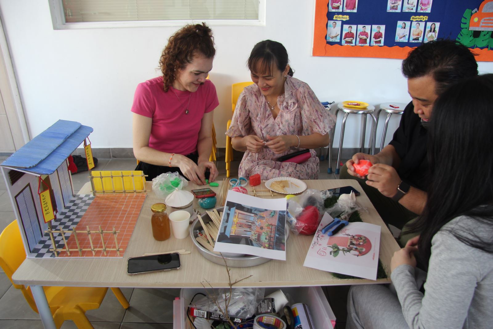 Our parents came to our school this morning to do Tet clay modeling with our teachers and staff. Our parents are very talented and they build beautiful models. They also collaborate well with our teachers and staff, sharing ideas, and working together seamlessly.